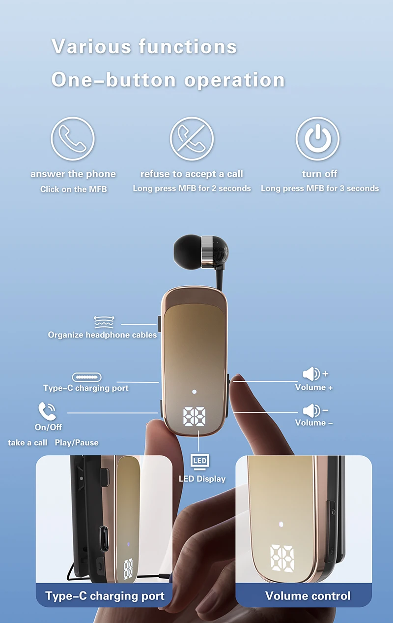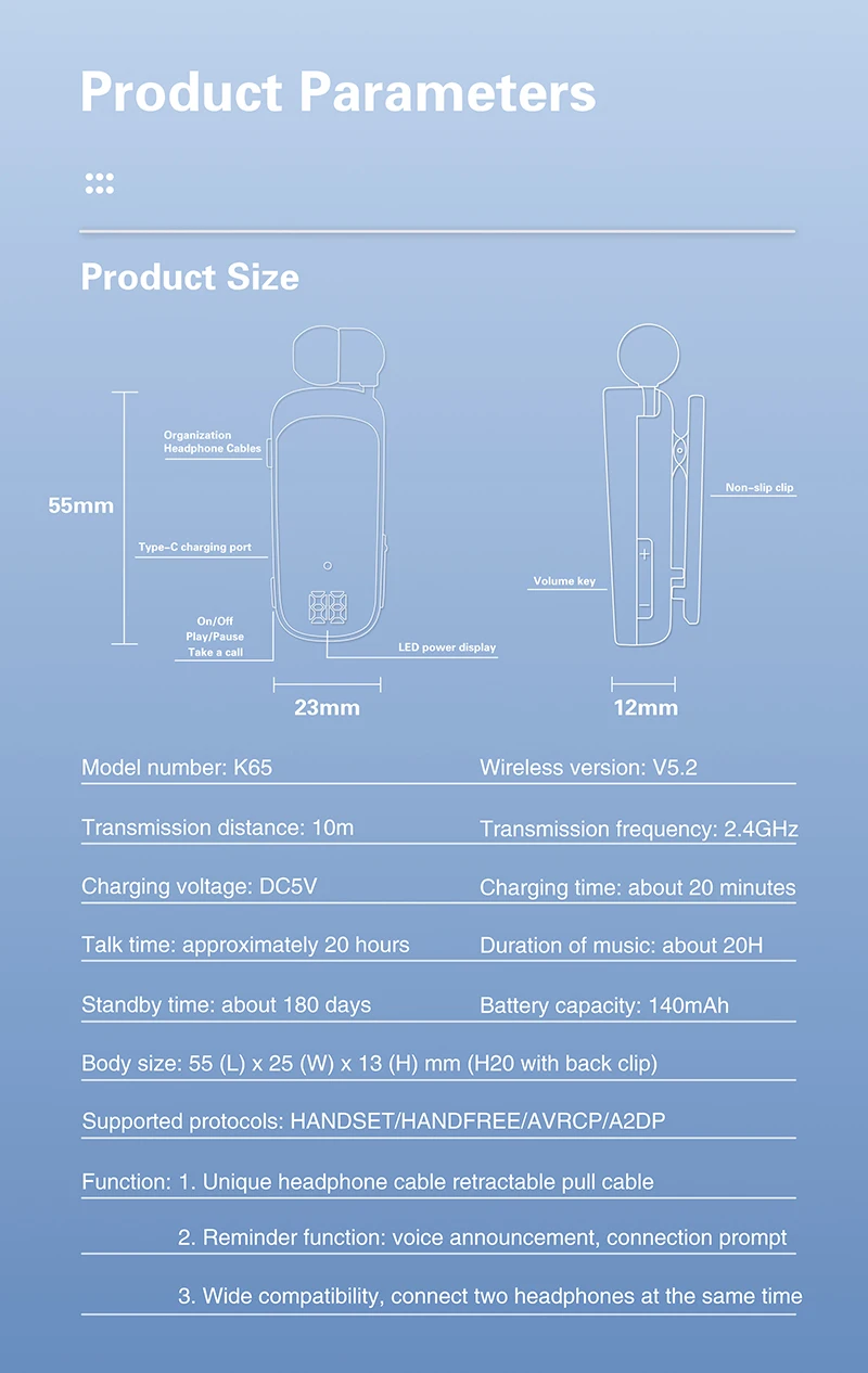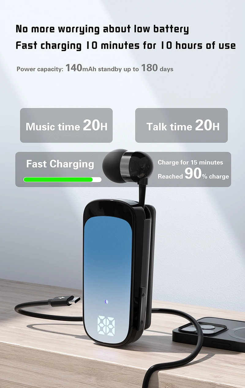 🎵Smart voice broadcast 🎵Smart call phone number, real-time report of headset status;